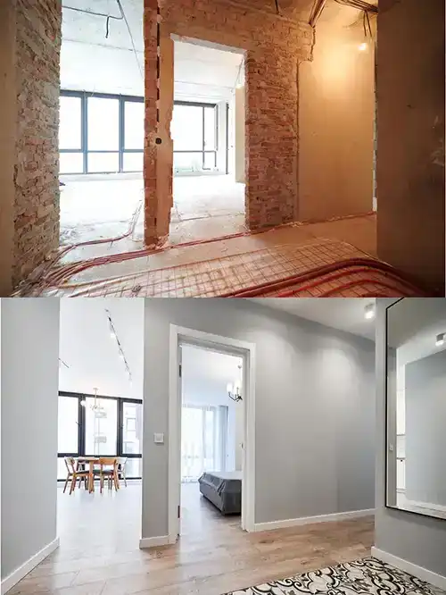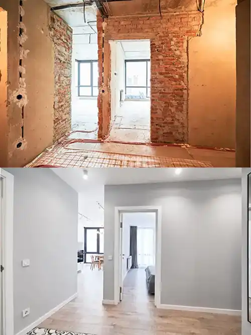 From raw construction to a bright, welcoming entrance. This full remodel brings modern elegance to a classic space.