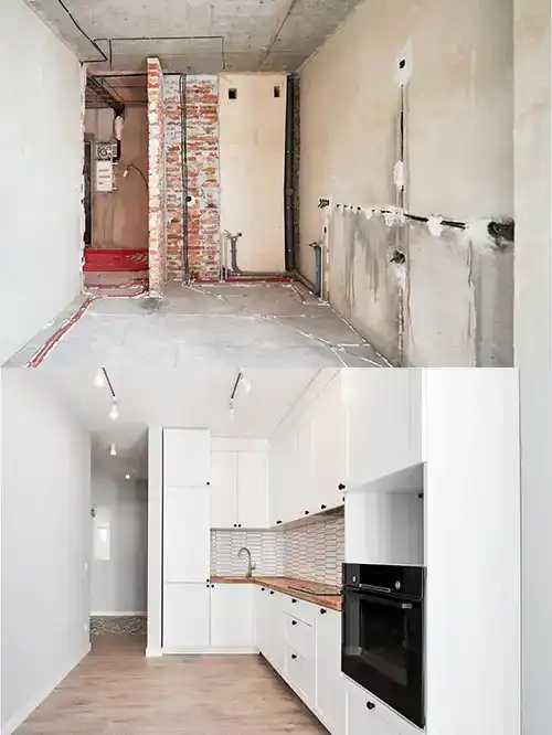 We transformed this empty shell into a bright, functional kitchen with custom cabinets and a clean, contemporary design.